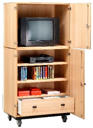 Descriptif du produit :Structure en panneau de particules mélaminé épaisseur 25 mm avec chants plaqués épaisseur 2 mm.Cadre métallique avec 4 roulettes Ø 9 cm dont 2 avec frein.1 tablette fixe et 2 réglables (épaisseur 25 mm).Poids supporté par tablette 15 kg.Fond du meuble en mélaminé épaisseur 25 mm, avec passe-câbles, obturateurs et grille d\'aération intégrés.155 kg.