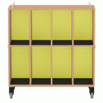 Descriptif du produit :Meuble mobile pour cartables en LIGNOpal, panneau de particules fines mélaminé avec chants collés en matière synthétique (MS).Avec 3 parois intermédiaires collées.Colonne perforée (25 mm) avec tablettes et panneau arrière en tôle d\'acier perforée.4 colonnes avec 2 compartiments pour sacs d\'école, et tapis de protection antidérapants en caoutchouc.Aimants fixés sur les parois laté ...