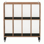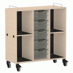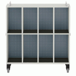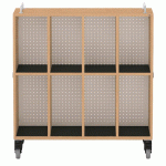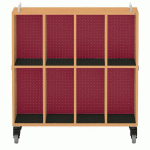 Meuble mobile pour cartables en LIGNOpal, panneau de particules fines mélaminé avec chants collés en matière synthétique (MS).Avec 3 parois intermédiaires collées.Colonne perforée (25 mm) avec tablettes et panneau arrière en tôle d\'acier perforée.4 colonnes avec 2 compartiments pour sacs d\'école, et tapis de protection antidérapants en caoutchouc.Aimants fixés sur les parois latérales pour la liaison avec d\'autres éléments.2 barres de préhension métalliques fixées sur l\'armoire.Livré monté.