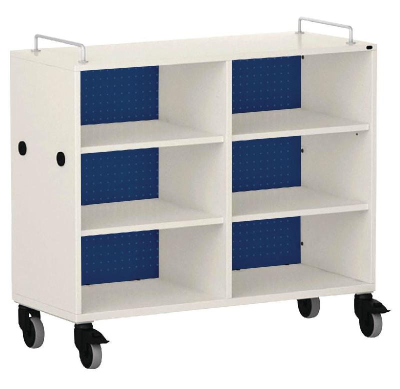 MEUBLE BAS SHIFT+ LANDSCAPE MÉLAMINÉ 4 ÉTAGÈRES - BLANC GRIS - BLEU SAPHIR - MANUTAN COLLECTIVITÉS