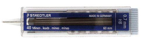 - La mine HB Staedtler est une solution maligne pour recharger votre portemine. D’une grande douceur, à fort pouvoir couvrant et profitant d’une haute résistance aux bris, elle sera votre allié pour dessiner ou écrire. Fabriqué selon un procédé écologique à 90 % de matières premières naturelles sans PVC ni agent assouplissant, ce produit se plie aux normes de qualité. Présentée dans un étui intégrant un bouton-poussoir avec mécanisme innovant, la recharge se fait automatiquement d'une seule main et mine par mine. Il suffit de quelques secousses pour la mettre bien en place. Vous ne risquez pas de casser une mine en la manipulant ! La forme de l’étui, en entonnoir, s’adapte facilement au réservoir du portemine. De plus, sa fenêtre de contrôle du niveau de mines vous permet de voir combien il vous en reste. Chez Bruneau, cet article est vendu en étui de 40 mines HB 0.7 mm