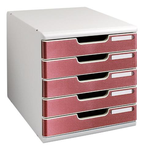 - Explorez toutes les possibilités de rangement avec le modulo 5 tiroirs d’Exacompta ! Ses points forts :très robuste et fonctionnel, ce bloc de rangement offre des belles dimensions de rangement pour y ranger jusqu’à 2 000 feuilles jusqu’au format 24 x 32 cmpour un meilleur confort d’utilisation, le coulissement des tiroirs est très silencieux et la butée d'arrêt évite leur basculementpour faciliter la prise des documents, le fond du tiroir est équipé d’un évidement. Les 5 tiroirs sont interchangeables et ont avec une grande capacité (H 4,2 x L 25 x P 32,5 cm), pour ranger un maximum de feuilles et papiersgrâce aux porte-étiquettes avec protection plexi (étiquettes fournies), vous saurez toujours précisément où se trouve chaque dossier.Juxtaposables et superposables, ces modules de classement 5 tiroirs Exacompta vous permettront de réaliser de véritables murs de classement. Grâce aux clips d'assemblage et aux patins fournis, chaque module restera toujours parfaitement en place.A vous de choisir vos propres coloris ! Pour le coffre : gris clair ou gris foncé. Pour les tiroirs : noir, noir avec bordures multicolores, gris, bordeaux ou bleu. Trouvez l'inspiration selon votre style ou vos envies !