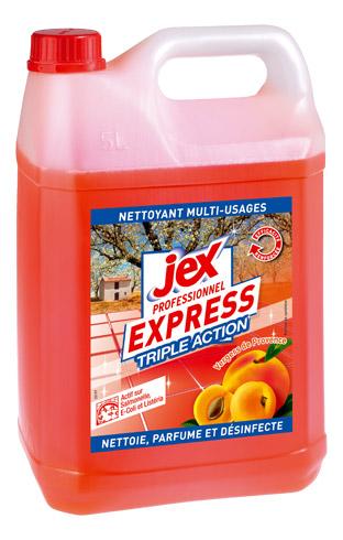 Descriptif du produit :- Le désinfectant Jex Express pêche, nettoie, parfume et désinfecte les sols et toutes les surfaces. Il dégraisse et élimine les taches tenaces.Large spectre de désinfection : Bactéricide: EN1276 et EN13697 en 5 min . Lévuricide: EN1650 et EN13697 en 15 min. Virucide: EN14476 entre 1 à 15 min selon la dilution et l’activité souhaitée. Il s’utilise sans rincer sur toutes les surfaces ...