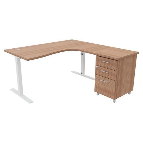 Pack Bureau+caisson haut IDEA asym. ret. à droite 160 cm Quadrifoglio Bureau profondeur petite : 80 cm Chant matériau : ABS antichoc Ergonomique : oui Finition : Mélaminée Gamme de produits : Idea Garantie client : 5 ans Hauteur hors tout : 74 cm Largeur hors tout : 160 cm Livré monté : non Montage : À monter Nb de tiroirs : 3 Nb de tiroirs à dossiers : 1 Piétement coloris : Blanc Piétement matériaux : Acier Plateau coloris : Noyer Plateau épaisseur : 30 mm Plateau matériau : Aggloméré Profondeur hors tout : 120 cm Sélection télétravail : non Système électrique : non Type de bureau : Bureau retour à droite Type de piétement : 2 pieds Type d'élément de bureau : Bureau Pack IDEA composé d'un bureau asymétrique avec poutre porteuse métallique sous plateau pour plus de solidité et d'un caisson hauteur bureau Plateau panneaux de particules bois haute densité épaisseur 30 mm, surfacé mélaminé antireflet et anti rayure avec chants ABS ép. 2 mm Panneaux réalisés exclusivement en bois recyclé 100% Chants ABS antichocs épaisseur 2 mm Vérins de stabilisation pour compenser les défauts de planéité du sol Pack Bureau+caisson haut IDEA asym. ret. à droite 160 cm Quadrifoglio, Type de piétement: 2 pieds, Montage: À monter, Hauteur hors tout: 74 cm, Largeur hors tout: 160 cm, Type de bureau: Bureau retour à droite, Type d'élément de bureau: Bureau, Profondeur hors tout: 120 cm, Plateau matériau: Aggloméré, Piétement coloris: Blanc, Plateau coloris: Noyer, Bureau profondeur petite: 80 cm, Nb de tiroirs: 3, Nb de tiroirs à dossiers: 1, Gamme: Idea, Livré monté: non, Chant matériau: ABS antichoc, Sélection télétravail: non, Piétement matériau: Acier, Système électrique: non, Plateau épaisseur: 30 mm, Finition: Mélaminée