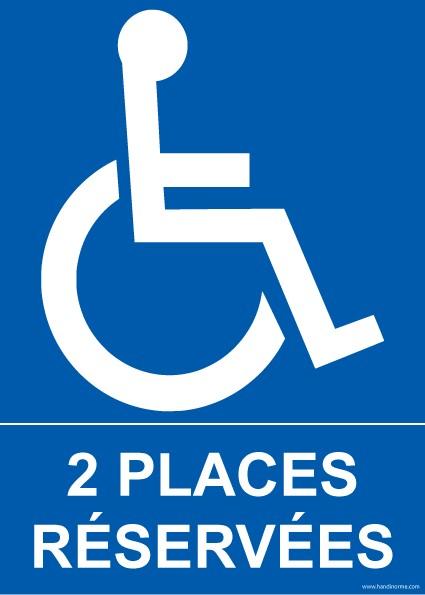 - Panneau Parking ''2 places réservées'' + Picto PMR Existe en PVC ou en Vinyle souple autocollant. Disponible en 3 dimensions Facile et rapide à poser. Ce pictogramme permet d'indiquer 2 places reservées aux personnes en situation de handicap titulaires de la carte ''Carte Mobilité Inclusion'' ou la carte ''Carte de stationnement pour personne handicapé'' Idéal dans tous lieux publics ...