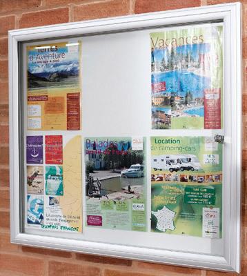 Le panneau vitrine d'extérieur est une petite armoire vitrée permettant d'afficher ou d'exposer des photos ou des informations. Il peut être à simple ou double face et peut se fixer au sol ou sur le mur. Vos affichages y seront à l'abri des intempéries: pluie, vent, neige,... Le panneau vitrine d'extérieur est idéal pour: - promouvoir une offre commerciale; - présenter une information au grand public; - ou encore pour exposer un objet, une entreprise ou une marque. Il est parfois muni d'un système d'éclairage LED, qui a pour but d'attirer le regard sur l'affichage. Ces modèles sont très souvent utilisés par: - les agences de voyages pour présenter une offre commerciale, une destination, etc.; - l'intérim pour afficher les offres d'emploi; - le secteur immobilier pour afficher les offres et annonces immobilières. Les critères suivant pourront vous aider à choisir le panneau vitrine d'extérieur adéquat: - les matériaux: on recommande les panneaux vitrine traités contre les rayons UV afin de conserver intact vos documents; - les portes: qu'elles soient coulissantes ou battantes, assurez vous qu'elles soient incassables afin de prévenir du vandalisme et autres accidents; - l'étanchéité: pour préserver vos documents des intempéries, votre panneau vitrine doit être parfaitement étanche. Choisissez votre panneau vitrine d'extérieur dans notre large sélection.