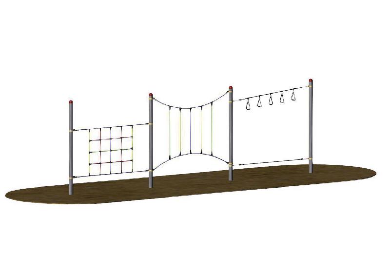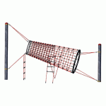 Poteaux en acier galvanisé à chaud (Ø 102 mm), longueur 3.00 mEléments en cordage Hercule Ø 16 mm avec colliers qui s\'adaptent sur les poteaux.Coloris : conforme à l’imageIl est possible de personnaliser chaque jeu en choisissant le coloris des cordages (bleu, vert, rouge, bleu, noir, jaune, chanvre, gris clair) et des pièces de liaison (noir ou beige)Merci de nous consulter.Le câble Hercule est composé de 6 torons acier de Ø 2.5 mm, eux-mêmes composés de 7 fils zingués. Ce procédé de fabrication lui confère une grande résistance et une stabilité extrême. Chaque toron est gainé de fibre polyester de première qualité, qui offre une haute résistance à l\'abrasion et une grande stabilité anti-UV. Après le câblage des torons, le cordage Hercule subit un traitement de surface de finition. L\'ensemble de ces opérations permet d\'obtenir une excellente résistance à l\'abrasion.Pour une installation à moins de 10 km de la mer, il est nécessaire de prévoir des accessoires inox, merci de nou