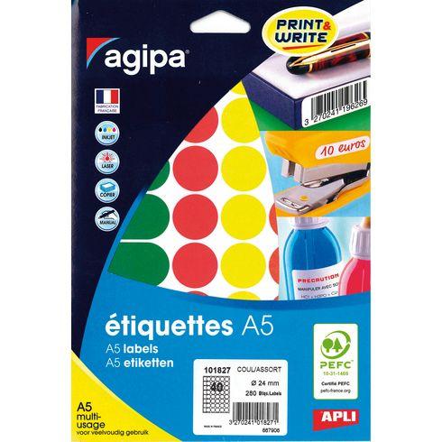 Descriptif du produit :- Idéale pour réaliser des planches de gommettes, pour identifier les tailles, les prix, les références.Pour écriture manuelle, pour impression jet d'encre, laser et copieurs.En planches A5 faciles à personnaliser et à imprimer grâce au logiciel gratuit sur [...] à l'aide du code logiciel 101827.format diamètre de 24 mmboîte de 7 feuilles de 40 pastilles soit 280 pastilles dimensions : ...