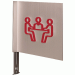 Profilé drapeau en aluminium gris anodisé naturel.Glissière de fixation murale (visserie non incluse).2 pictogrammes en PLA. D’origine végétale, le constituant principal du PLA est l’amidon de maïs, cette matière première renouvelable et biodégradable est utilisée dans l’emballage alimentaire.