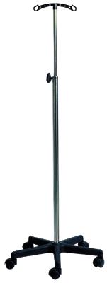 Le modèle photographié est le modèle pied nylon, 2 crochets polyamide.Pied à 5 branches en nylon moulé avec roulettes jumelées pivotantes diamètre 50 mm.Fourreau en inox 18/10 ème diamètre 30 mm, longueur 1 m avec douille de serrage en inox.Tiges en inox 18/10ème diamètre 16 mm, longueur 1 m, pour un réglage maximum en hauteur de 1,95 m.