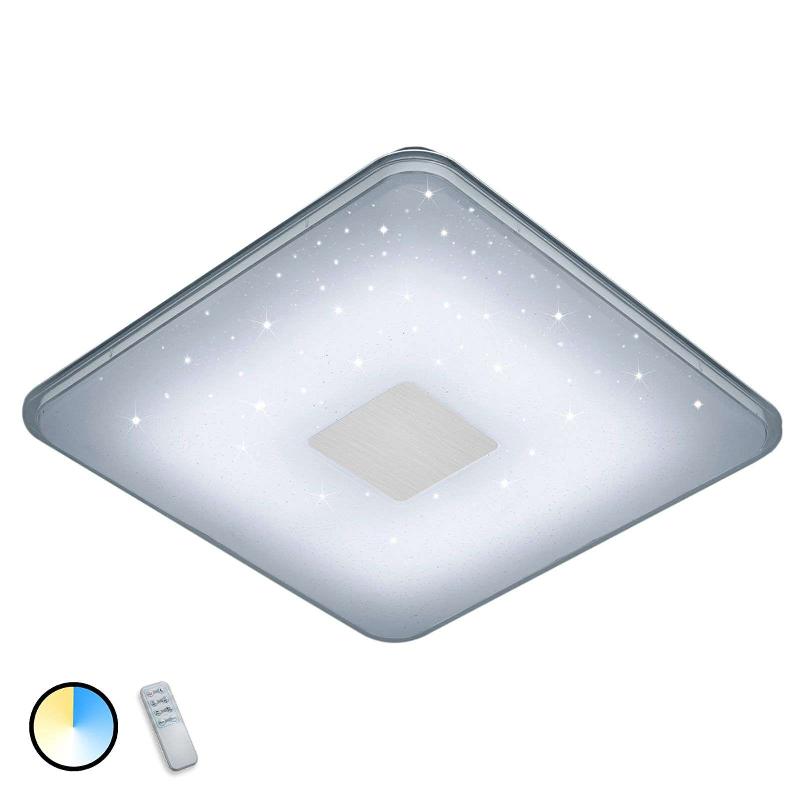 Plafonnier LED Samurai avec télécommande pour températures de couleurs et mode veilleuse Le plafonnier LED Samurai vous offre plusieurs fonctionnalités qui pourront vous simplifier la vie. La télécommande fournie vous permet d’accéder à l’ensemble de ces options. Vous pourrez ajuster son intensité lumineuse, faire varier la température de couleur entre un blanc chaud, un blanc neutre et un blanc jour. Vous créerez ainsi des ambiances variées en fonction de l’humeur et des besoins du moment. Le plafonnier propose aussi une fonction veilleuse. La nuit, il affiche un semblant de ciel étoilé qui vous accompagnera dans vos rêves. Ce plafonnier affiche une forme carrée avec des angles arrondis. Au centre du plafonnier, on distingue un deuxième carré plus petit. Non seulement, Samurai a beaucoup de fonctions, mais vous pourrez l’installer à peu près partout dans votre logement.