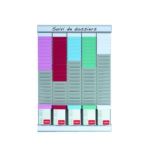 Descriptif du produit :- Ce planning à fiches T est composé de 5 colonnes de 24 fentes : vous visualisez en un coup d’œil votre planning de la semaine au jour le jour. Pratique, vous pouvez l'utiliser comme planning hebdomadaire ou vous organiser par tâche à réaliser, pour vous ou vos équipes.Le modèle possède une capacité de 120 fiches T indice 2 (60 mm). Grâce à sa composition en métal ainsi que ses kit ...