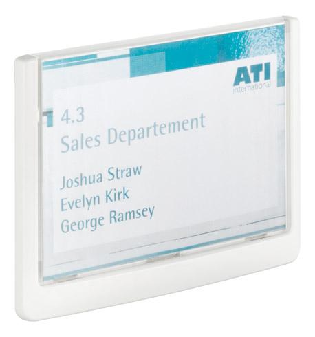 Descriptif du produit :- Plaque de signalisation composée d'un cadre graphite en ABS de qualité et d'une plaque amovible en acrylique transparent. Livrée avec adhésif double face, vis et chevilles, gabarit et bristol. Bristol facile à personnaliser et à imprimer grâce au logiciel gratuit DURAPRINT sur le site [...] avec le code logiciel 4861. Pour document format A6 ( dimensions utiles : H 10,55 x L 14,9 cm). Dim ...