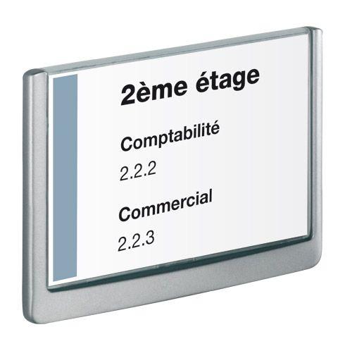 Descriptif du produit :- Plaque de signalisation composée d'un cadre graphite en ABS de qualité et d'une plaque amovible en acrylique transparent. Livrée avec adhésif double face, vis et chevilles, gabarit et bristol. Bristol facile à personnaliser et à imprimer grâce au logiciel gratuit DURAPRINT sur le site [...] avec le code logiciel 4866. Pour document format A5 (dimensions utiles : H 14,85 x L 21 cm). Dimens ...