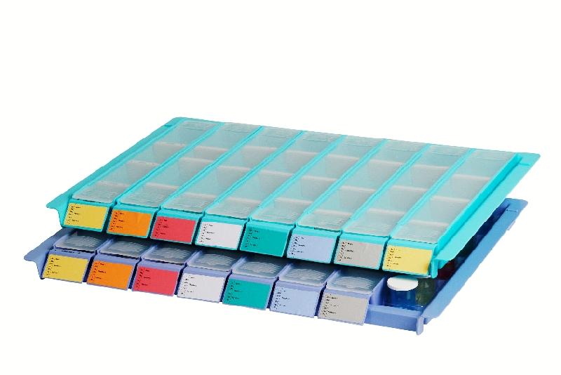 Descriptif du produit :Plateau piluliers 8 jours avec 3 séparateurs réglables et amovibles x 4 emplacements matin/midi/soir/nuitLe 8 ème module du pilulier facilite la préparation des prescriptions hebdomadairesComposé d´un plateau en polypropylène incassable et de 8 modules piluliers avec couvercle transparentL/l/H : 60 x 40 x 3,4 cmMinimum de commande : 7 plateaux
