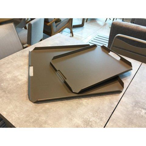 Le plateau est un élément de vaisselle de service qui facilite la mise à disposition d'autres composants de cuisine d'un endroit à un autre ou d'une personne à une autre. Par exemple, le plateau peut servir à transporter un service à café (tasses, sous-tasses et cafetière) de la cuisine au séjour. Il peut aussi servir de support pour un repas, que ce soit pour un petit-déjeuner au lit ou pour un plateau-télé. Assimilé au matériel du serveur dans la restauration, l'utilisation du plateau est désormais incontournable en maison.... Voir plus