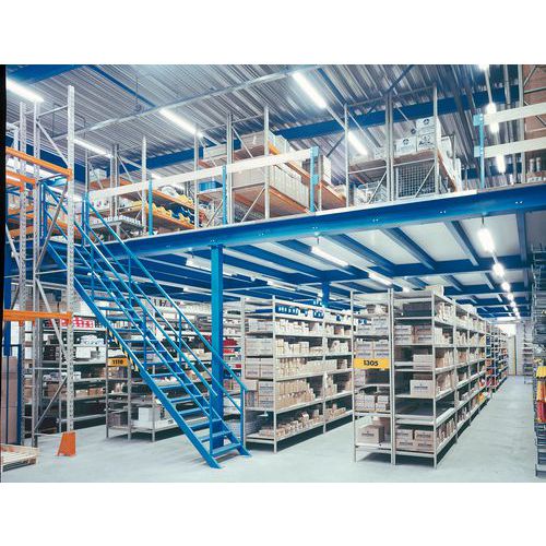 Découvrez notre plateforme de stockage pour doubler votre surface. Nous fournissons l'ensemble des équipements : escalier, rambard ...