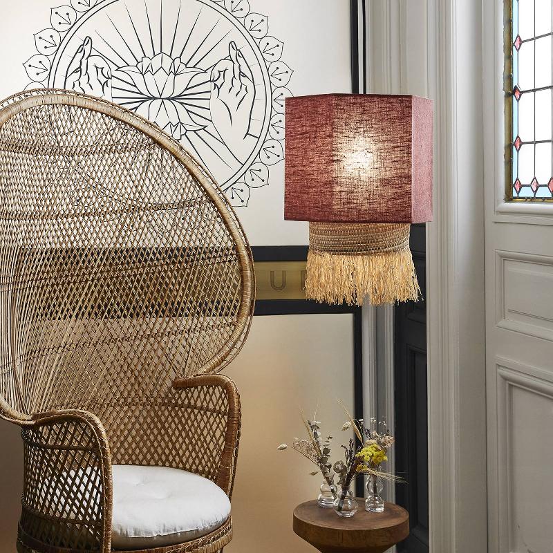 Suspension Marrakech avec un abat-jour à deux couches en fibres naturelles et en textile de lin coloréLe caractère confortable d\' ...