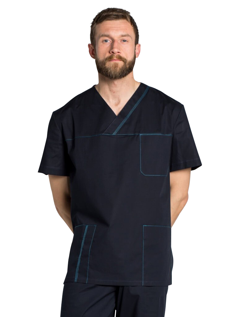 Tunique médicale bleue pour HommeUne tenue médicale homme de couleur vive, légère et confortable.Principalement conçu pour les hom ...