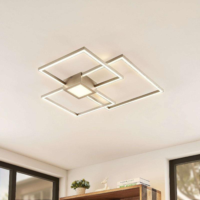 Plafonnier LED Nelia - dimmable, avec fonction mémoire Le plafonnier LED Nelia - composé d\'un cadre métallique entrelacé artistiq ...
