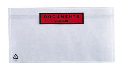 POCHETTE ADHÉSIVE ''DOCUMENTS CI-INCLUS'' NATIONAL CLASSIQUE 228 X 120 MM - BOÎTE DE 1000