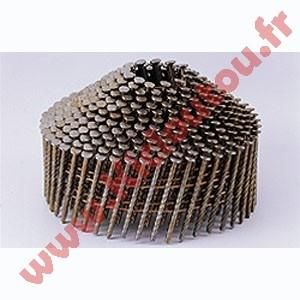 Descriptif du produit :Pointes 16° de 2.1x50 mm finition crantées électro galva en rouleaux coniques liaison fil métallique. Carton de 8400 clous