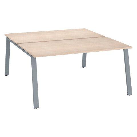 PÔLE 2 BUREAUX ECLA CHÊNE CLAIR L 160 X P 80 CM PIÈTEMENT MÉTAL FINITION ALUMINIUM