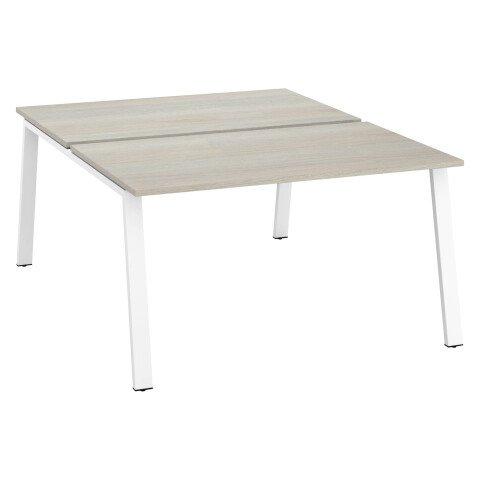 PÔLE 2 BUREAUX ECLA CHÊNE GRIS L 140 X P 80 CM PIÈTEMENT MÉTAL FINITION BLANC