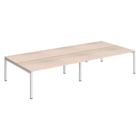 PÔLE 4 BUREAUX DROITS ARKO L 360 X P 168 CM PLATEAUX CHÊNE CLAIR PIÈTEMENT MÉTAL BLANC