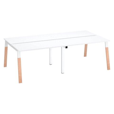 - Adoptez ce bureau partagé Ecla au design d'inspiration scandinave dans sa version pieds bi-matière métal et bois massif.Composition :Plateau en panneaux de particules avec revêtement mélaminé et traité anti-reflets d'épaisseur 25 mm.Poutre de renfort sous toute la longueur du plateau.Chants ABS épaisseur 2 mm.Piètement métallique type arche incliné avec vérins de réglage en hauteur, idéal pour ajuster le niveau du bureau à votre taille.Le plateau dispose d'emplacement pré découpé pour la pose d'un top acces pour les plateaux de profondeur 60 et 80 cm. Avec le plateau profondeur 80 cm vous pourrez ajouter 2 obturateurs (80 mm) ronds ou carrés (en option). Différents types d'accessoires compatibles pour ces emplacements 80 mm : passe-câbles simple, chargeur induction sans fil, multiprise encastrable...Finition de piétement : métal blanc, bois massif.Accessoires en option : Panneau acoustique Ecla (référence ST1332)Multiprise encastrable (référence 711380)Chargeur induction encastrable (référence 711384)Obturateur passe câble ( référence 707904)Dimensions : 4 largeurs de plateaux au choix: 240, 280, 320, 360 cm.2 profondeurs : 126 ou 166 cm avec un espace de 6 cm central pour le passage des câbles.Hauteur 75 cm.Montage : Livré démonté. Montage en option.Normes et environnement :Ce produit est écoresponsable car il est certifié PEFC. Label international, PEFC assure une gestion durable des forêts et garantit l’origine et la traçabilité du bois utilisé dans la fabrication des produits.Fabrication françaiseBesoin d’une variante ? Coloris, tailles, dimensions, extensions de gamme, accessoires… Plus de choix avec l’équipe MyBruneauJe formule ma demande.