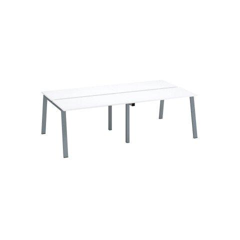PÔLE DE 4 BUREAUX ECLA BLANC L 120 X P 60 CM PIÈTEMENT MÉTAL FINITION ALUMINIUM