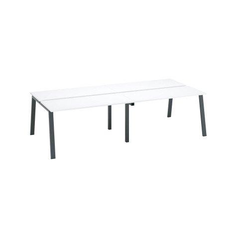PÔLE DE 4 BUREAUX ECLA BLANC L 140 X P 60 CM PIÈTEMENT MÉTAL FINITION ANTHRACITE