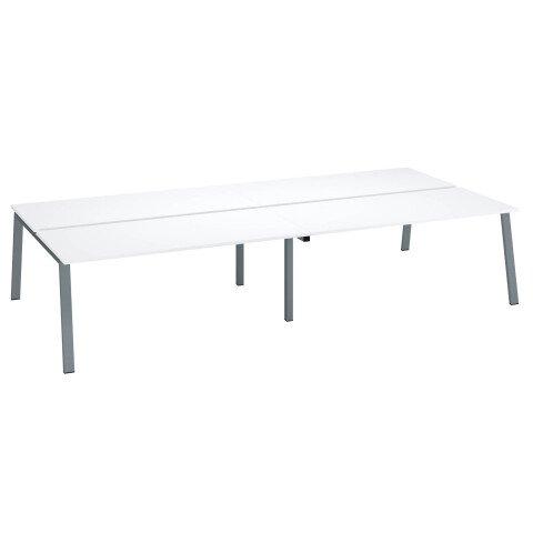 PÔLE DE 4 BUREAUX ECLA BLANC L 180 X P 80 CM PIÈTEMENT MÉTAL ALUMINIUM