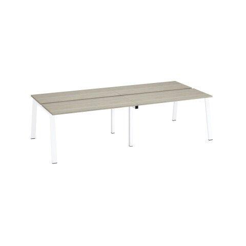 PÔLE DE 4 BUREAUX ECLA CHÊNE GRIS L 140 X P 60 CM PIÈTEMENT MÉTAL FINITION BLANC
