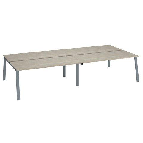 PÔLE DE 4 BUREAUX ECLA CHÊNE GRIS L 180 X P 80 CM PIÈTEMENT MÉTAL ALUMINIUM