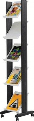 Descriptif du produit :Structure acier laqué époxy anthracite/gris, habillée de polystyrène et équipée de 4 roulettes pivotantes5 tablettes de présentation en polystyrène choc gris Réglables tous les 2 cm et orientables à 0-45-75°Hauteur 33 cm avec rebord de 4 cm pour le maintien des documentsL/H/P : 35 x167,5 x 38, 5 cmLivré prêt à monter avec notice