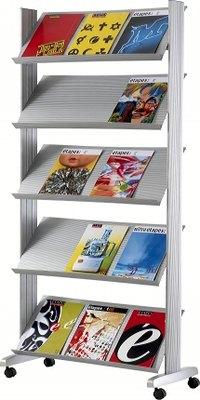 Descriptif du produit :Existe en modèle simple ou triple faceStructure acier laqué époxy gris aluminium, habillée de polystyrène et équipée de 4 roulettes pivotantes5 tablettes de présentation en ABS gris alu Réglables tous les 2 cm et orientables à 0-45-75°Hauteur 33 cm avec rebord de 4 cm pour le maintien des documentsL/H/P : 85,5 x 167,5 x 38,2 cmLivré prêt à monter avec notice