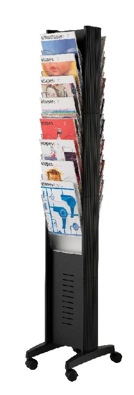 Descriptif du produit :Le modèle présenté est le modèle coloris noirStructure métal, profil en polystyrène. Cases en polystyrène cristal pour documents A4, épaisseur 2,4 cm.4 roulettes pivotantes.L/H/P : 30 x 167,5 x 38,5 cm.Livré prêt à monter (sans outils, sans vis) avec notice.