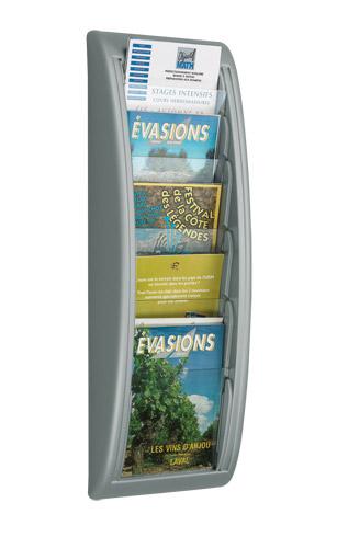 - Dans un bureau, une salle d'attente, un hall d'accueil, ce présentoir mural Quick Fit 5 cases permettra de bien ranger dossiers, revues, catalogues de format A5 (15 x 21 cm). Support monobloc en polystyrène. Juxtaposable pour former des murs de documentation, l'utilisateur trouvera très facilement la documentation recherchée. Les façades plexiglass cristal amovibles coulissent dans le support et permettent de visualiser les documents par transparence.dimensions hors tout : H 65 x L 22,7 x P 9,5 cm.dimensions case : H 24,5 x L 15 x P 2 cmfixation murale par vis (non fournie)3 couleurs au choix : noir, blanc, aluminiumproduit 100% recyclable