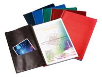 Pochettes intérieures pour ranger des documents en 2ème et 3ème de couverture. Parfaite ouverture à plat.