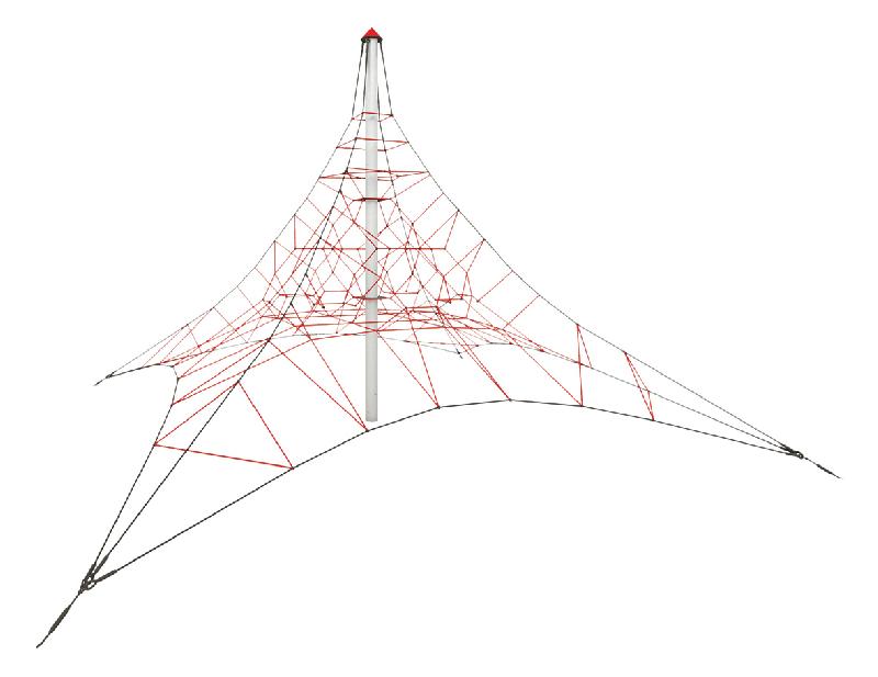 Descriptif du produit :1 mât en acier galvanisé à chaud (Ø 194 mm) en 1 partie, avec chapeau aluminium (thermo laqué rouge)1 filet pyramidal 3D avec structure en câble Hercule Ø 18 mm rouge et câbles de tension en câble Hercule Ø 18 mm noirPièces d’assemblage et sertissages en aluminium2 paliers caoutchouc autour du mât4 tendeurs M20 Inox, avec ferrures et chaînes d’ancrage pour le scellementColoris des ...