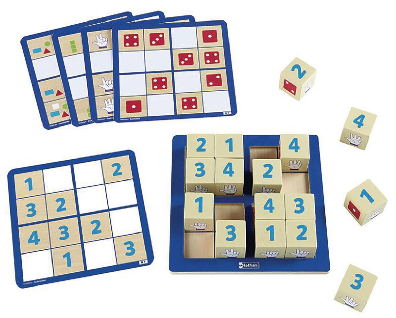 Descriptif du produit :L\'enfant remplit les cases de son socle avec des cubes en bois en veillant toujours à ce qu\'une même représentation du nombre ne soit placée :- qu\'une seule fois par colonne,- qu\'une seule fois par ligne,- qu\'une seule fois par carré de 4 cases.Les 24 énigmes présentées sur les fiches sont réparties en 4 séries de difficulté progressive, en fonction du nombre d\'indices déjà di ...