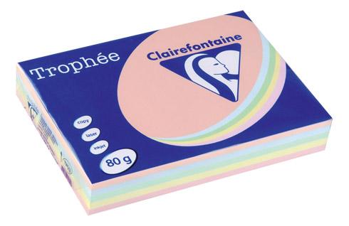 - Les caractéristiques de la gamme couleur Trophée Clairefontaine font que ce papier est un choix attrayant pour des projets où la qualité d'impression et la variété de couleurs sont importantes.Vaste gamme de teintes : Offre une grande variété de couleurs, permettant une composition et un assortiment raffiné.Résistance à la lumière : Les couleurs froides et chaudes du papier sont durables et ne se dégradent pas facilement sous l'effet de la lumière.Qualité irréprochable : Assure une qualité élevée en termes de texture et de finition.Impressions recto/verso parfaites : Permet des impressions recto/verso sans compromettre la qualité.Rendu fidèle des couleurs : La fidélité des couleurs est garantie, assurant que les impressions reflètent avec précision les teintes d'origine.Excellente opacité : La qualité de l'opacité garantit que le papier offre une couverture uniforme, évitant la transparence indésirable.Pour une organisation optimale de vos travaux d’impression, cette ramette est composée de 5 couleurs pastel assorties : bleu, vert, jaune, rose et saumon. Produit certifié ISO 9706.Ce produit est écoresponsable car il est certifié FSC®. Organisation internationale, FSC® promeut une gestion responsable des forêts dans le monde entier et garantit la traçabilité du bois utilisé dans la fabrication des produits.