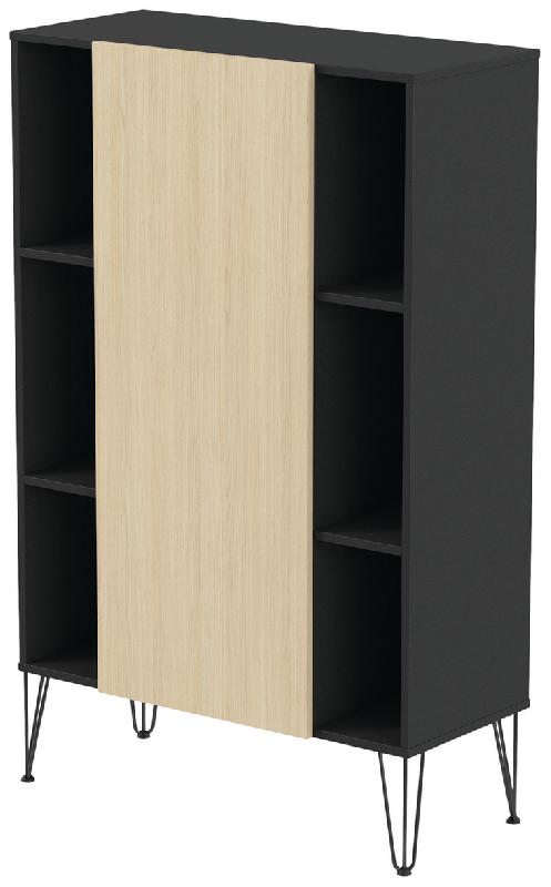 Descriptif du produit :Rangement haut Java 100 cm 1 porte 6 niches noir/chêne clair