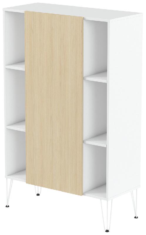 Descriptif du produit :Rangement haut Java 100 cm 1 pte 6 niches blc/chêne clair