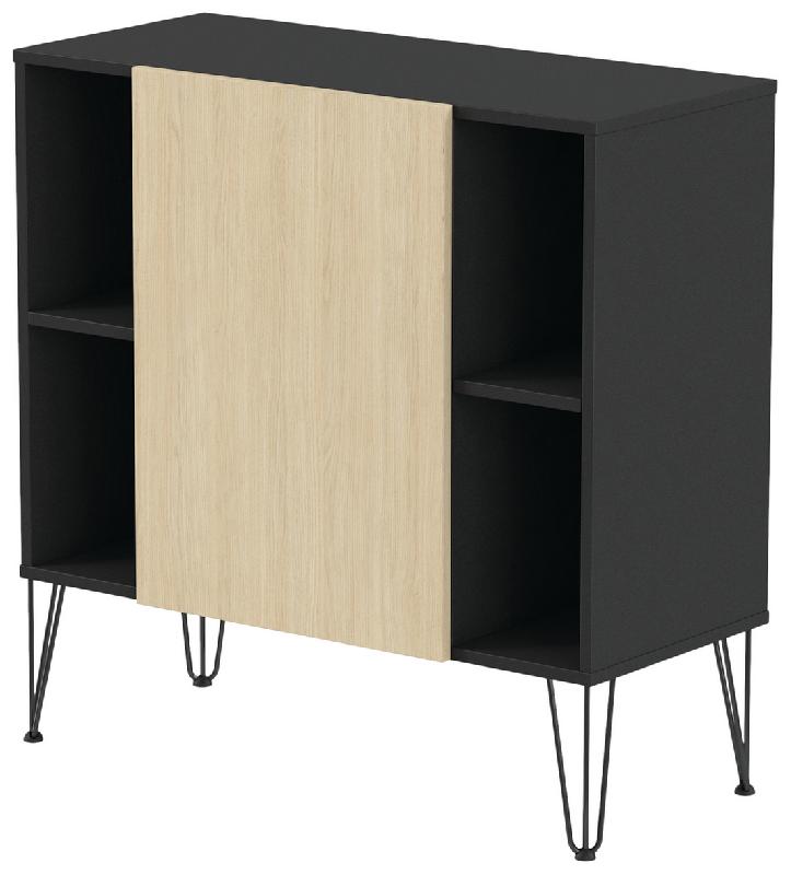 Descriptif du produit :Rangt mi-haut Java 100 cm 1 porte 4 niches noir /chêne clair