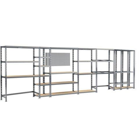 - Concept rangement de garage MODULÖ STORAGE SYSTEME EXTENSION 6 étagères 24 plateaux longueur 605 cm pour garageEtagère sextuple charge lourde 24 plateaux + verticale 3 box longueur 605 cm comprenant une étagère rack 3 plateaux 40x150xH 192 cm livrée avec montants de renfort au sol anti-écartement et une étagère charge lourde 6 plateaux 40x50xH 192 cm et une étagère établi 4 plateaux 40x100xH 192 cm livrée avec panneau porte outils et une étagère 4 plateaux 40x100xH 192 cm et une étagère 3 niveaux dimensions 40x100xH 192 cm pour pneumatique et une étagère de rangement verticale 3 box dimensions 40x105xH 192 cm livrée avec plateaux bas et plateaux hauts - Charge lourde 250 kg/plateau - Montage facile par clipsage - Finition peinture époxyUtilisation concept rangement complet pour le garage permettant sur une longueur de 6 mètres de ranger des petits produits comme les produits alimentaires, chaussures, livres, des gros produits volumineux, des produits lourds, des produits encombrants, des pneumatiques et des produits longs difficiles à ranger.• idéal pour utiliser l'espace au mur, même sur de petites surfaces,• très fonctionnel, il permet d'optimiser le rangement des produits petits, moyens, gros et volumineux et de ranger au sol des produits encombrants en hauteur.• modulable en hauteur grâce à ses plateaux amovibles,• énorme capacité de charge de 6000 kg, répartie jusqu'à 250 kg par plateau,• grande résistance dans les endroits humides,• montage rapide, sans vis ni boulon grâce à sa conception innovante d'extension des 2 côtés.Possibilité d'extension permanente avec toutes les extensions MODULÖ STORAGE.Livraison en France métropolitaine uniquement (hors îles et Corse). Livraison en bas de l'immeuble. Si vous souhaitez la livraison à l'étage et la prestation montage, contactez-nous par e-mail à mybruneau@bruneau.fr pour un devis global.