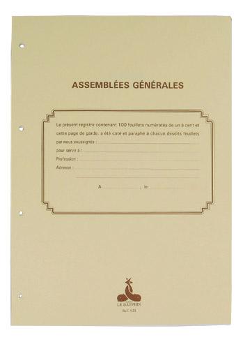 Descriptif du produit :- 100 feuillets unis, foliotés et perforés pour registres 4 anneaux. 3 premières feuilles personnalisées (assemblée générale, conseil d'administration, livre de paye). Format : 21 x 29,7 cm. Recyclable.