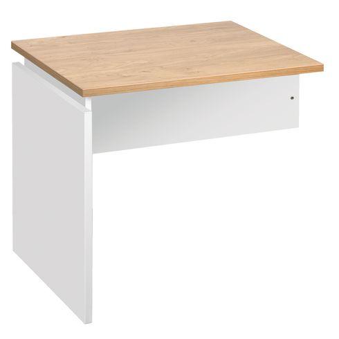 - Optimisez votre espace de travail avec un retour suspendu pour bureau Intuitiv ’ au design contemporain. Composition :Plateau robuste et résistant en panneau de particules d’une épaisseur de 25 mm avec revêtement mélaminé : chêne clair avec entretoises blanches.Chants droits de 2 mm d’épaisseur.Piétement plein réglable en hauteur sur 3 positions (72,5 cm, 75,5 cm et 82 cm).Voile de fond blanc en panneau de particules mélaminés.Pratique, le modèle se positionne aisément à droite ou à gauche de votre bureau Intuitiv'.Dimensions :H 72,5/75,5/82 x L 80 x P 60 cm.Normes et environnement :Ce produit est écoresponsable car il a été fabriqué à base de 50 % minimum de matériau recyclé.Ce produit est écoresponsable car il est certifié PEFC. Label international, PEFC assure une gestion durable des forêts et garantit l’origine et la traçabilité du bois utilisé dans la fabrication des produits. Fabrication française.