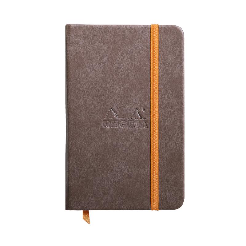 RHODIARAMA CARNET REMBORDÉ RIGIDE 9X14 CM 192 PAGES LIGNÉ PAPIER IVOIRE 90G FERMETURE ÉLASTIQUE - CHOCOLAT - LOT DE 2